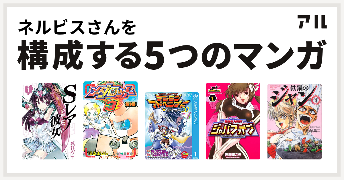 ネルビスさんを構成するマンガはsレア装備の似合う彼女 メダロット デジモンアドベンチャーvテイマー01 超無気力戦隊ジャパファイブ 鉄鍋のジャン エムエフコミックス 私を構成する5つのマンガ アル